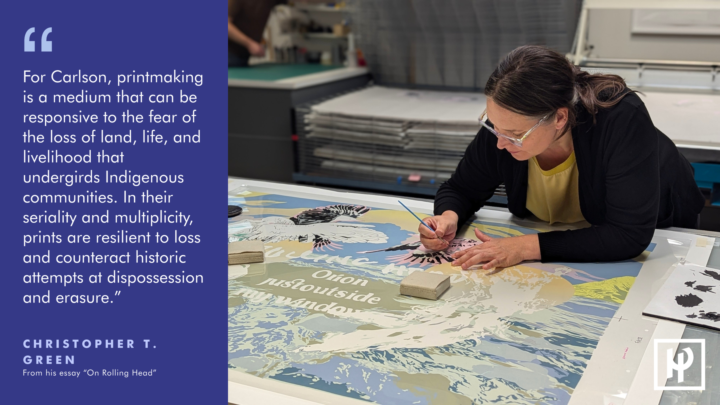 HIGHPOINT EDITIONS’ visiting artist studio is set up for an artist to apply new printing techniques to their practice, efficiently test prints, provide technical support, and encourage creative exploration. The dedicated artist studio allows visiting artists time to work quietly yet with direct access to HP's professional printing studio and printing staff. During their experience, the artists work to complete a new body of work – often working in printmaking for the first time – that will be exhibited in the Highpoint galleries, print fairs, or eventually, may be acquired by a museum or private collection.