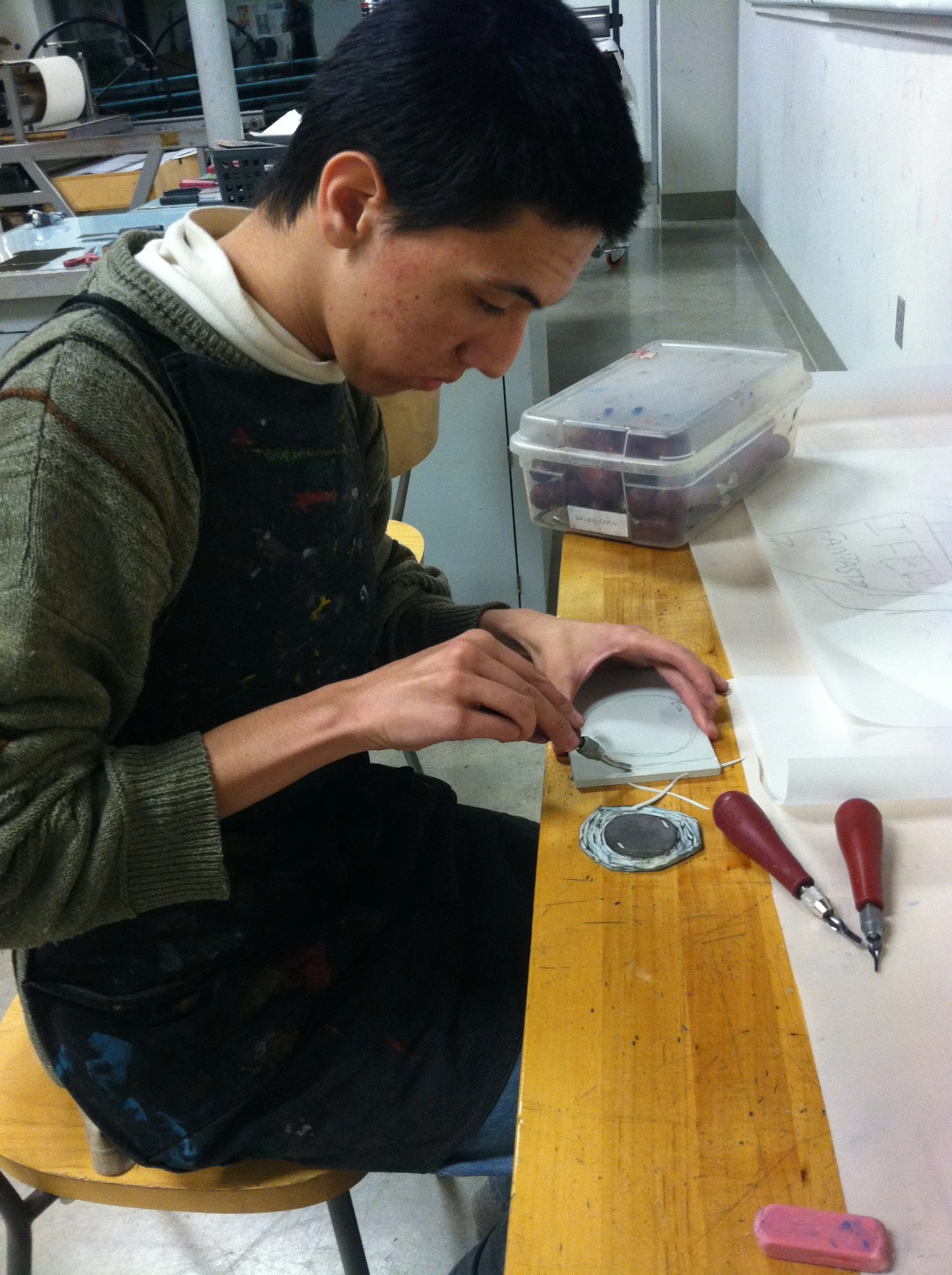 Use carving tools and a relief block, learn the basics of pin registration, and print by hand.