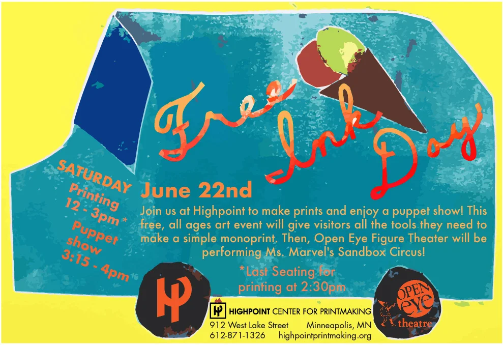 Three times a year Highpoint invites the community to an afternoon of hands-on printmaking and creative fun. At these free, public events visitors of all ages can drop in anytime during the afternoon to make unique, hand-made artwork. All materials for the planned activity are non-toxic and supplied by Highpoint (while supplies last), and no registration is necessary – just drop in, bring your creativity, and be ready to get inky! Staff and volunteers will be able to answer any questions along the way.