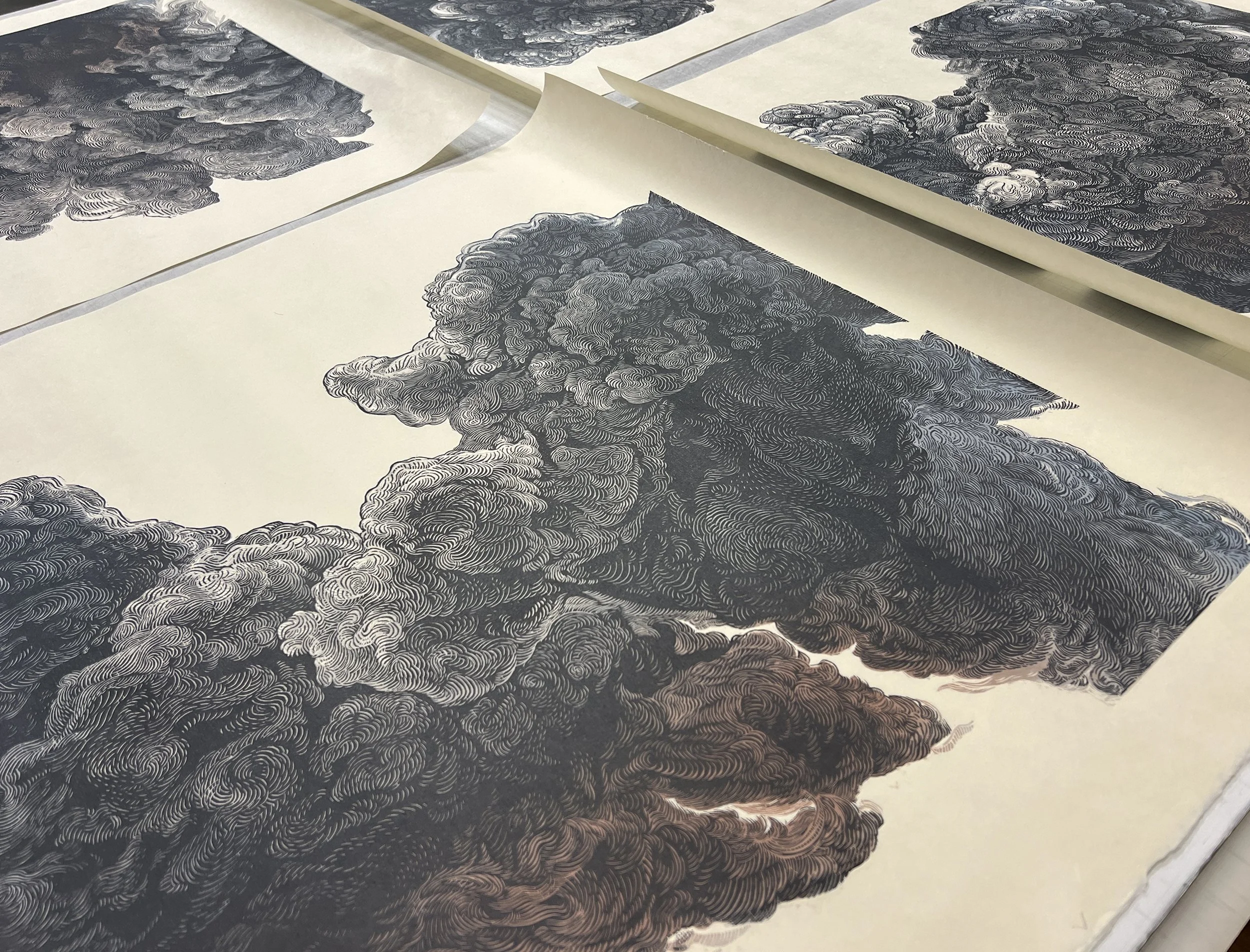 Ericka Walker, TNT (500 tons), woodcut and monoprint, 23.5 x 23.5”