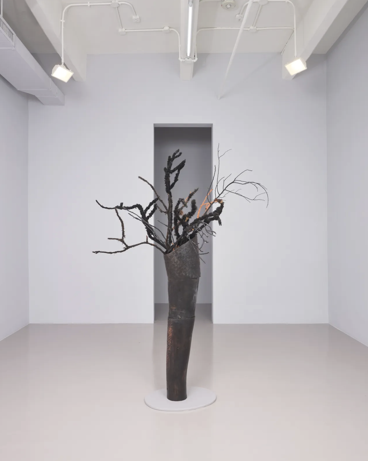 “Upon learning of her ancestors' enslavement on True Blue plantation in Fort Motte, South Carolina, Gbadebo made the site a focal point of her work. For the past three years, she has hand dug soil from the cemetery that she then transforms into clay for her ceramic vessels. The works' unique sizes and anthropomorphic shapes instinctively develop as she hand builds each of them using a Nigerian and Cameroonian coiling technique. Beyond the soil which they are made of, Gbadebo’s vessels carry—inside them or on their surfaces—invocations of True Blue’s landscape, sometimes being filled with pine needles, Carolina gold rice or woven segments of donated hair, all while acting as bodies occupying space.”