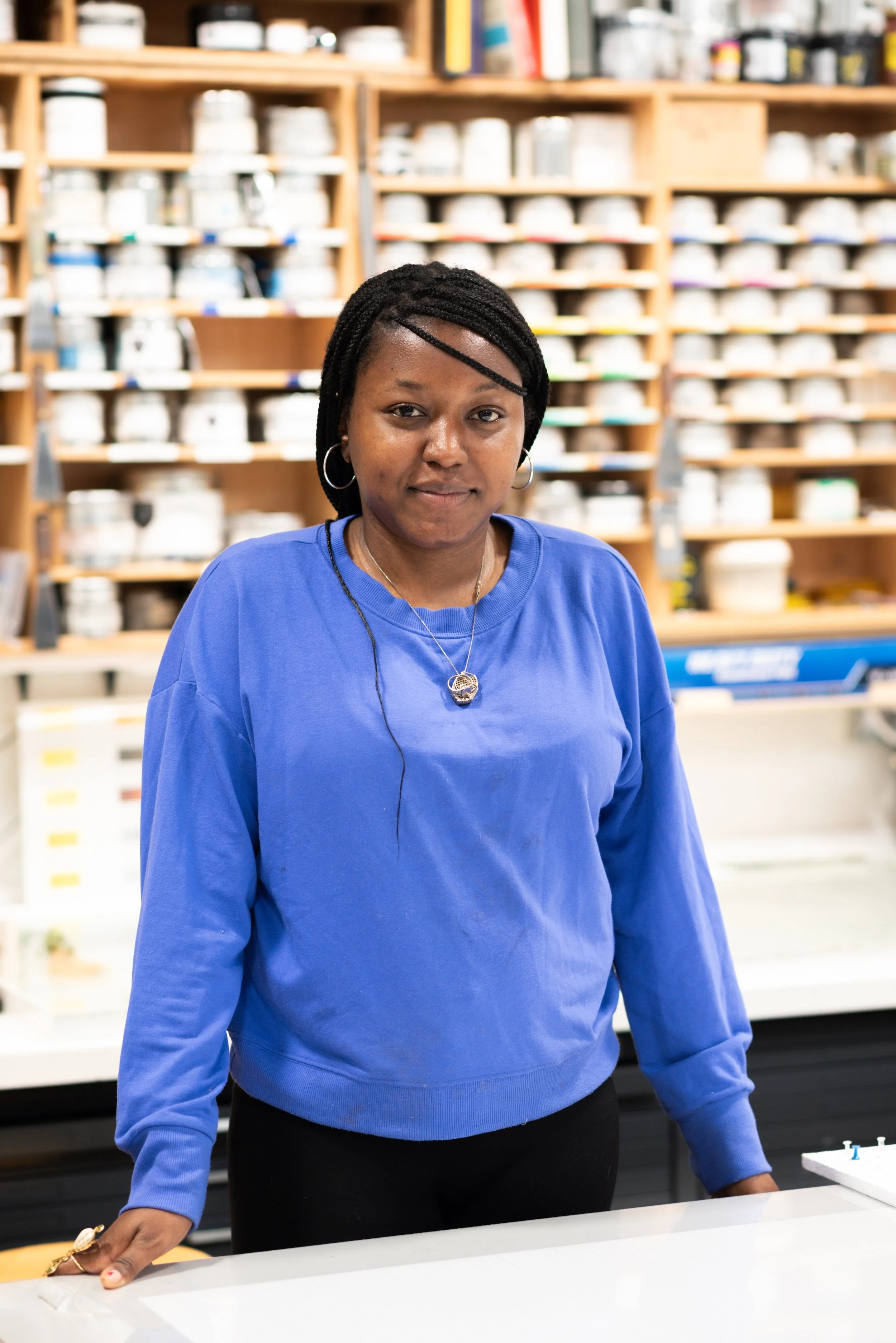 Adebunmi Gbadebo (Ah-dae-bu-mee Bha-dae-bo) lives and works in Philadelphia, Pennsylvania. Gbadebo earned a BFA at the School of Visual Arts, New York, and a certification in Creative Place Keeping at the New Jersey Institute of Technology. She was an Artist in Residence at the Clay Studio in Philadelphia (2021-2025) and has also been a Maxwell and Hanrahan Fellow (2023) and a Pew Fellow (2022). Gbadebo was a Keynote speaker for the American Ceramic Circle annual conference (2023) and has given talks at various educational and cultural institutions including the Museum of the African Diaspora, the Metropolitan Museum of Art and the Newark Museum of Art. She served as the Community Engagement Apprentice to Architect Nina Cooke John for the Harriet Tubman Monument in Newark, New Jersey, to replace a statue of Christopher Columbus, and is currently working with students and faculty at Clemson University to create a sculpture that honors Black and enslaved laborers.